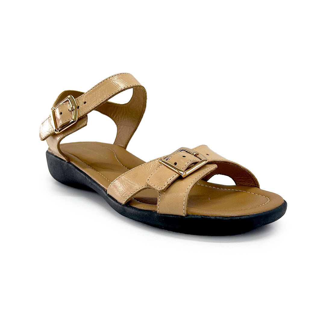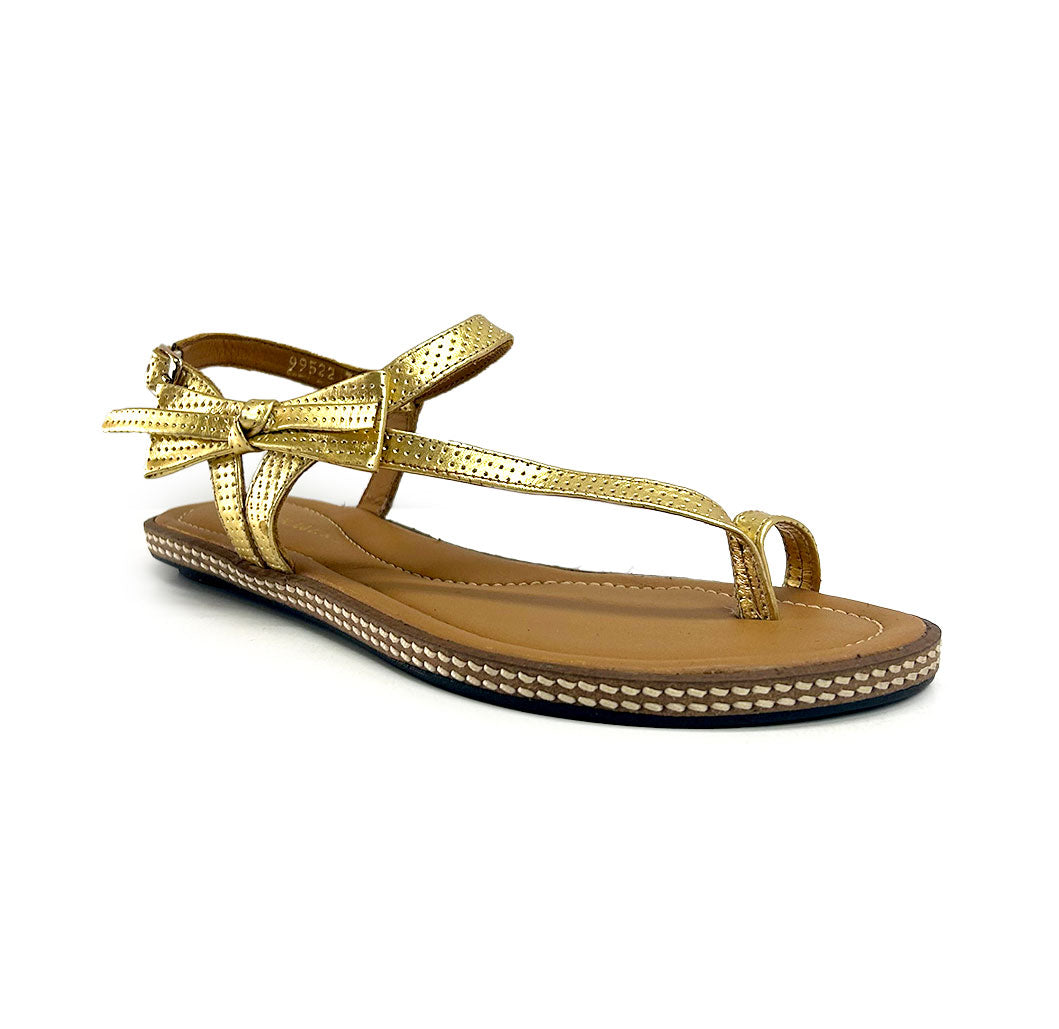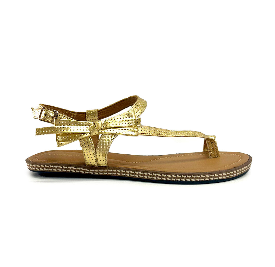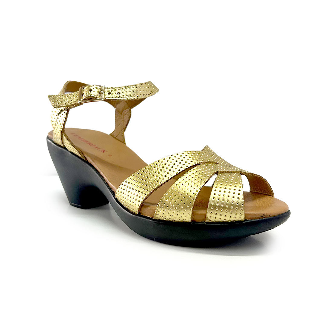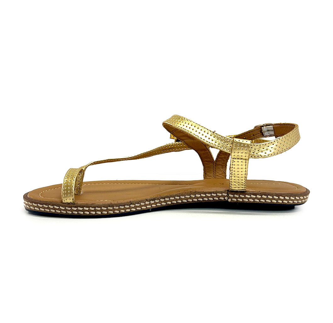 Sandalias Laura Color Oro. Cuero Mercedes Foil.