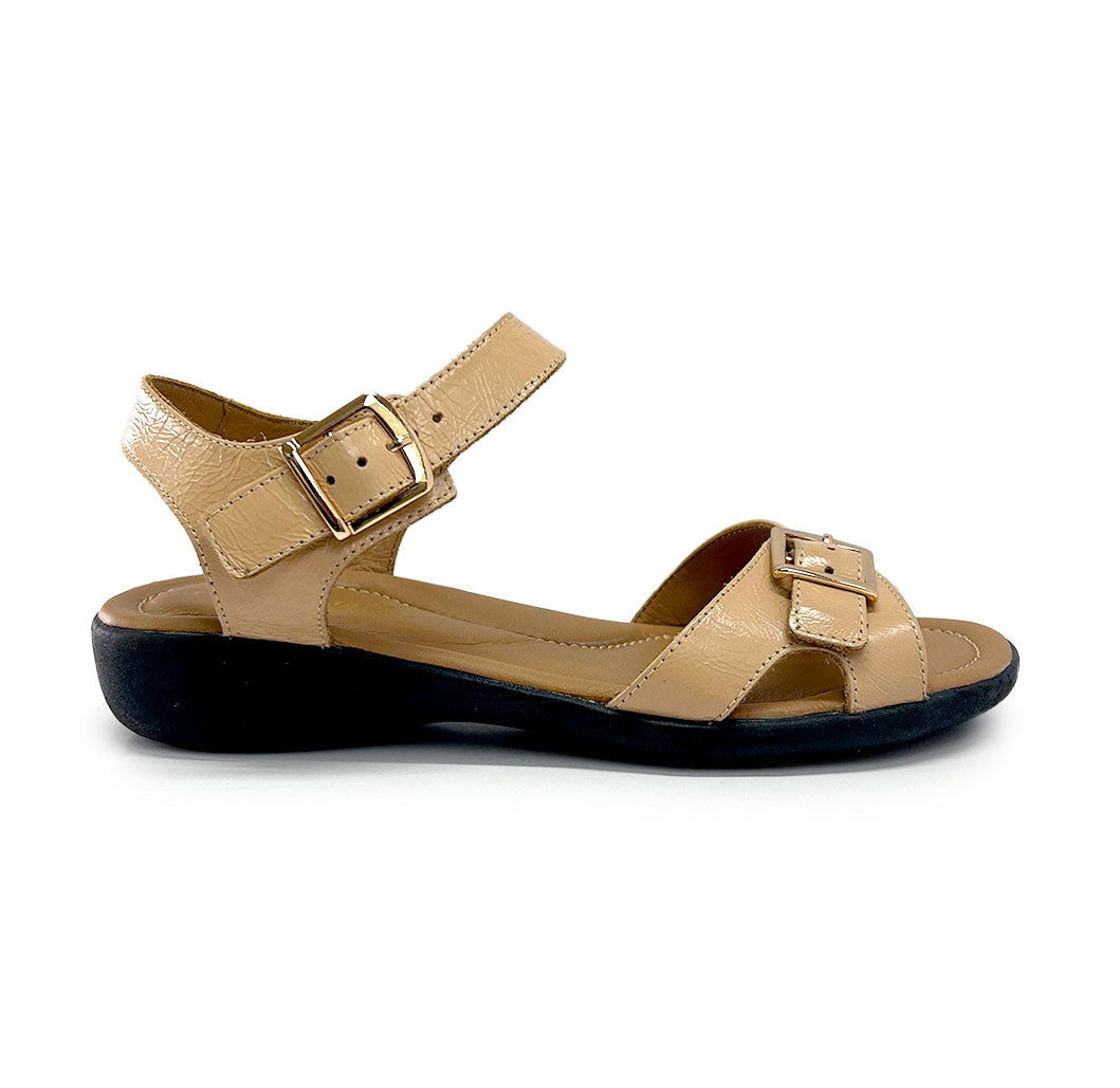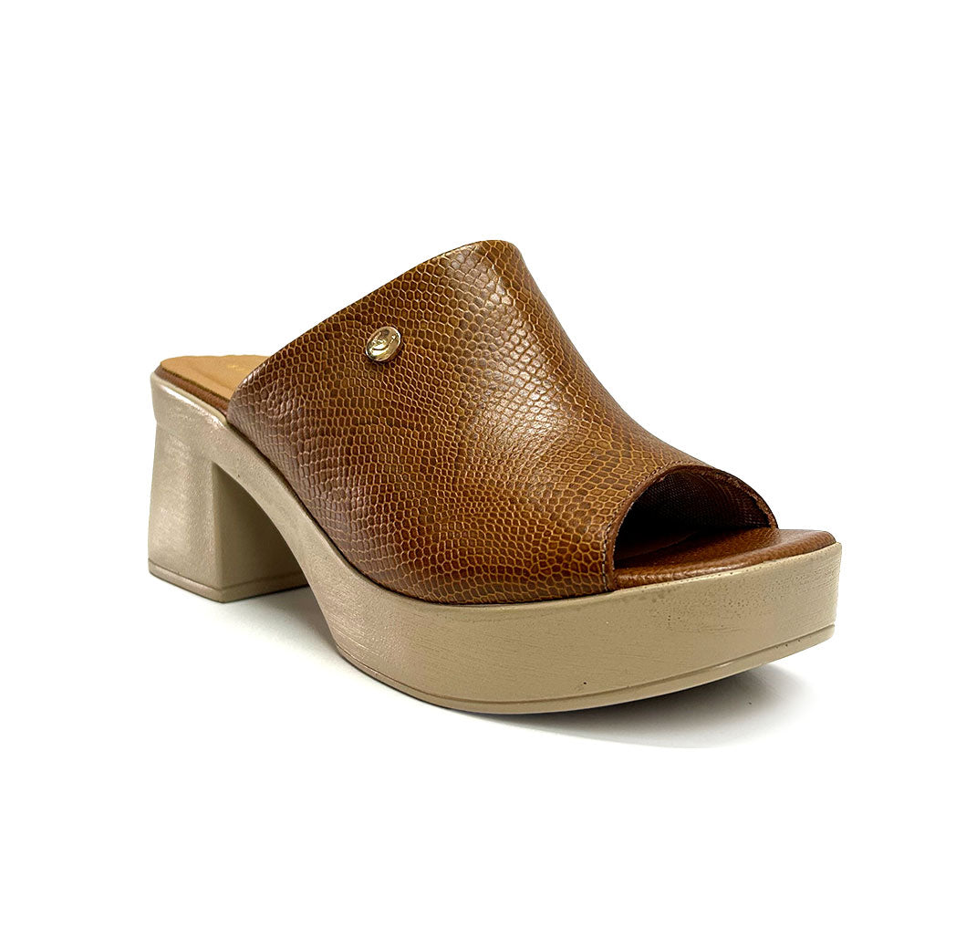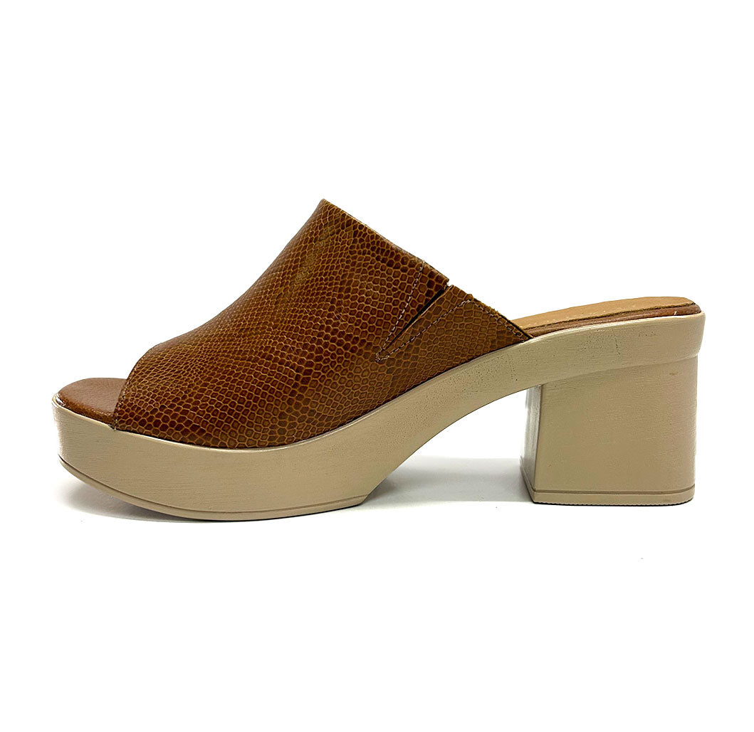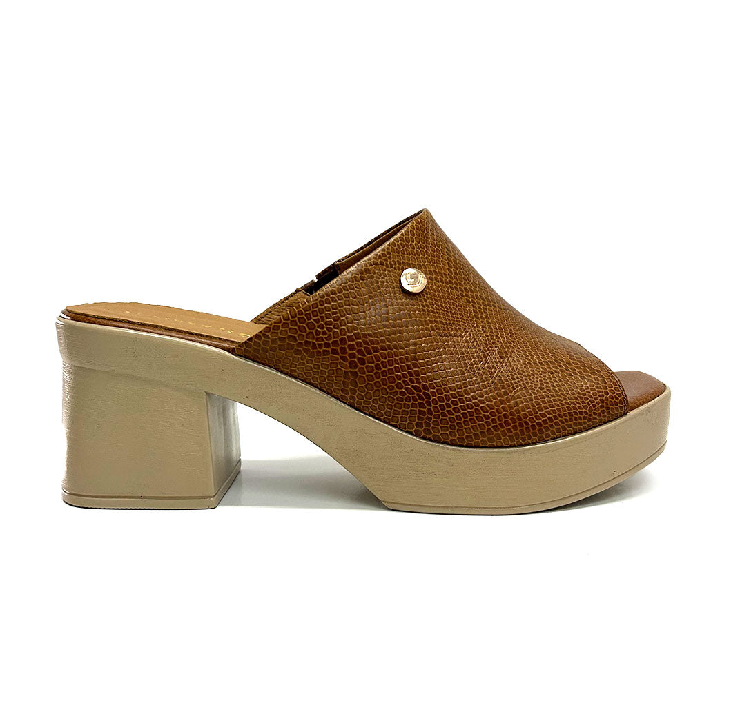 Sandalias Sara Color Miel. Cuero Labrado Serpiente.