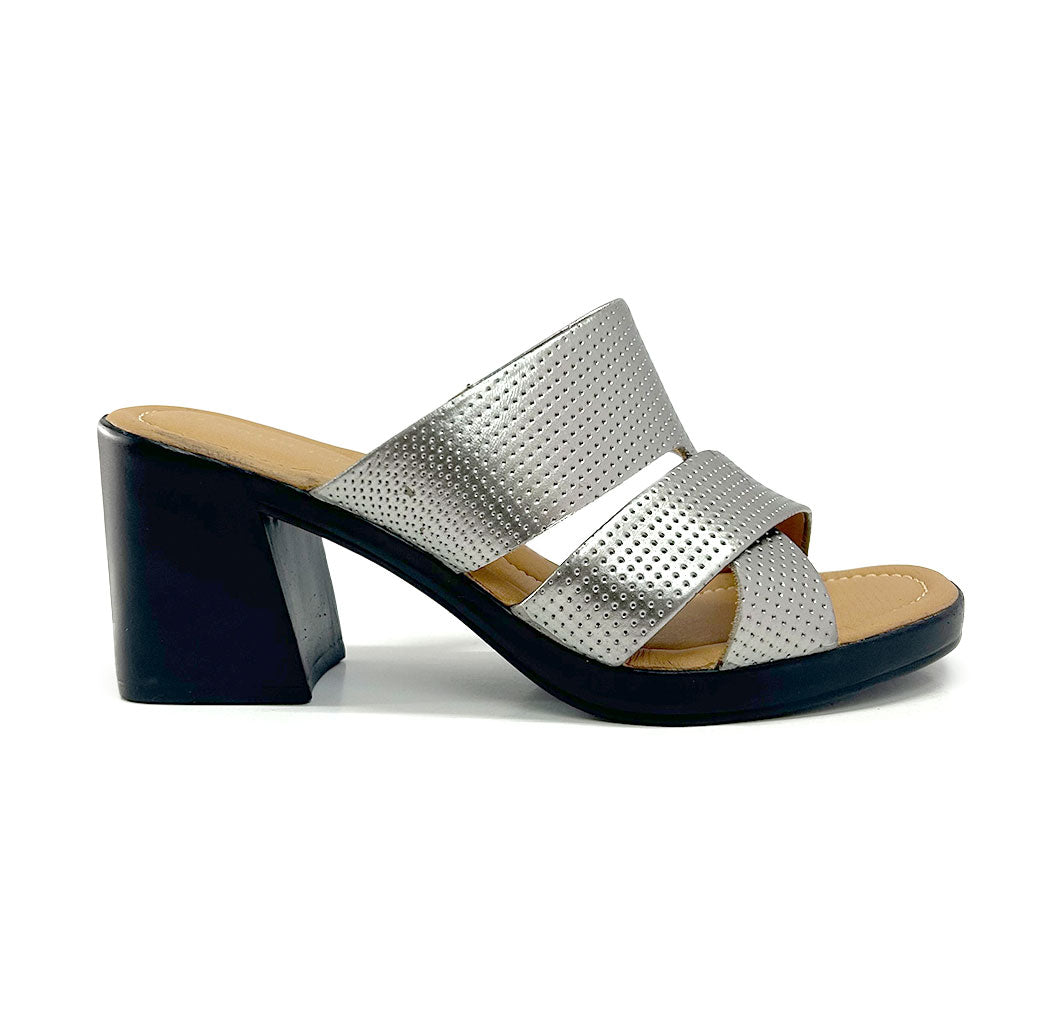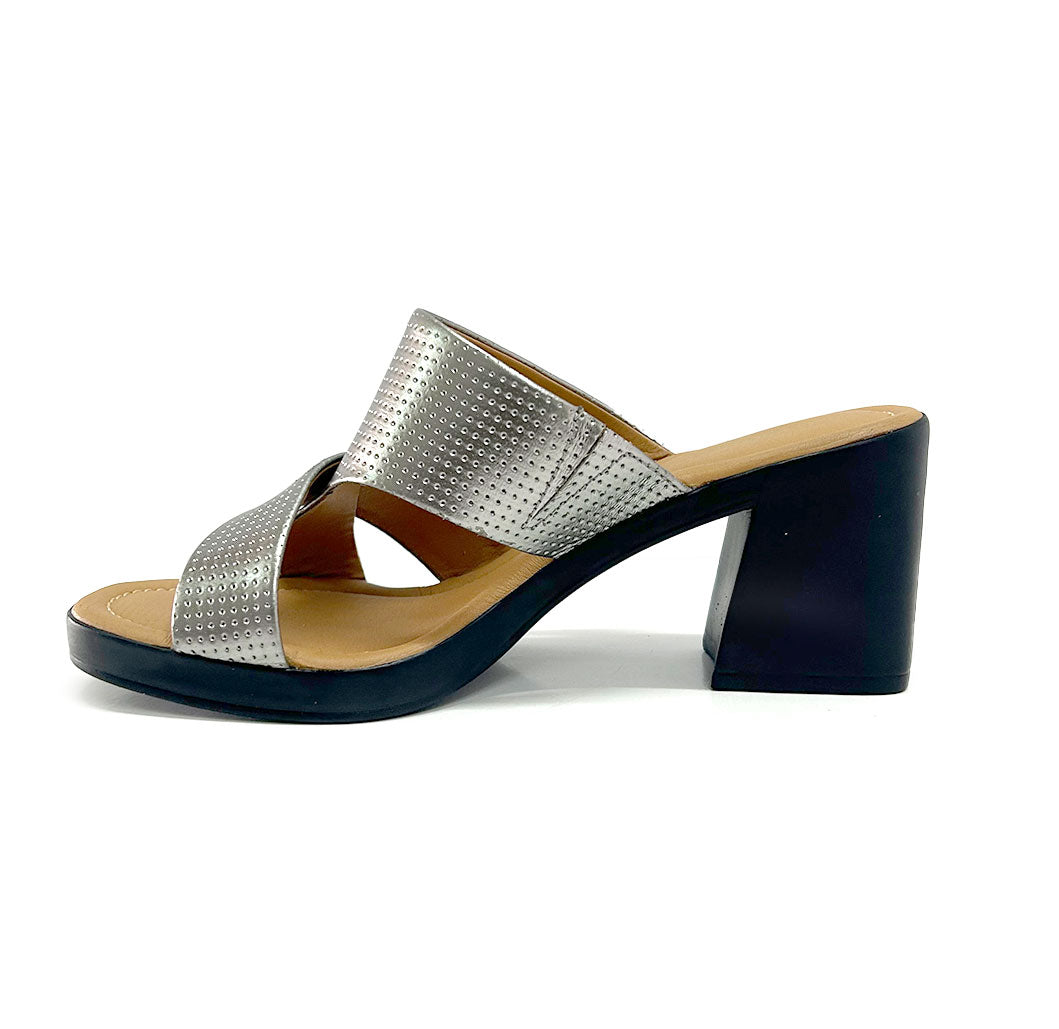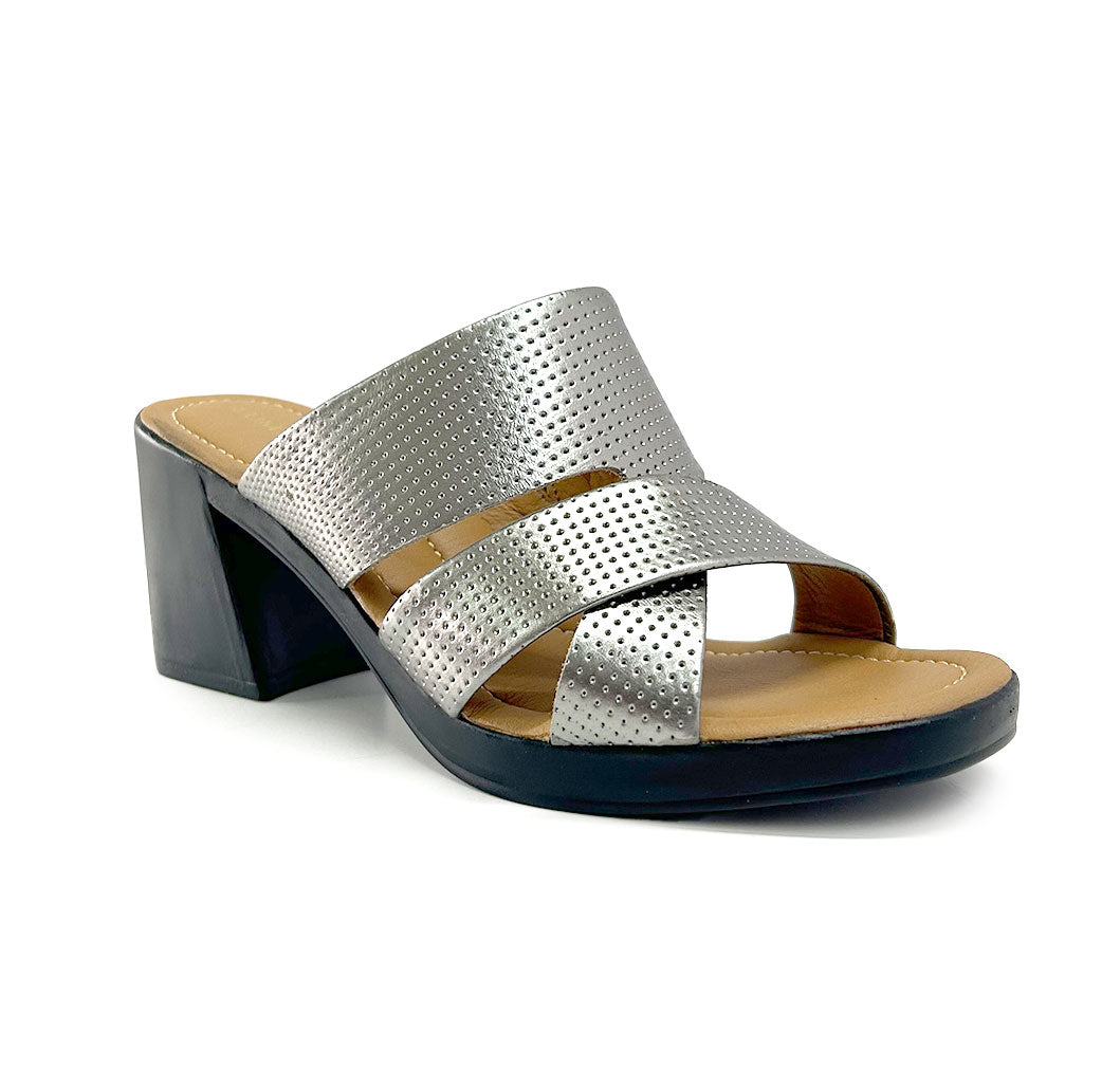 Sandalias Sasha Color Gris. Cuero Mercedes Foil.